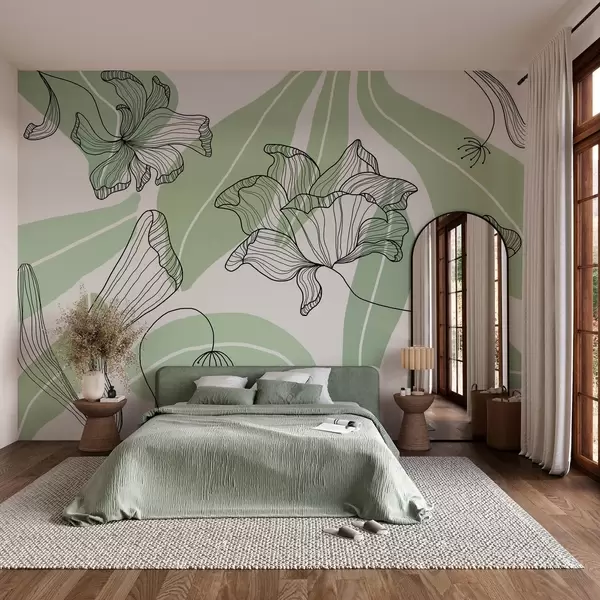 Fotomurales hojas y flores abstractas en tonos verdes Nr. w04499v1