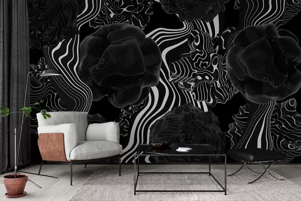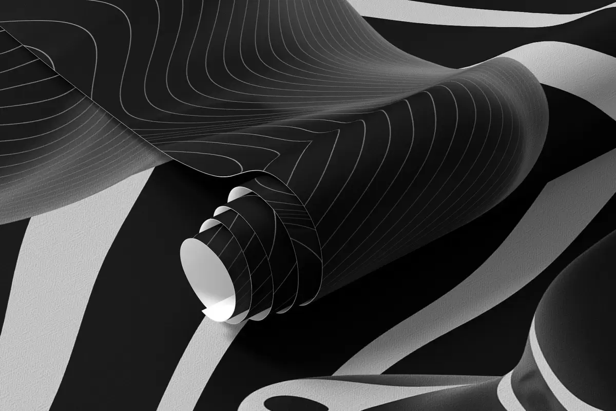 Fotomurales formas orgánicas abstractas en estilo 3D en tonos negros con rayas blancas Nr. w04628