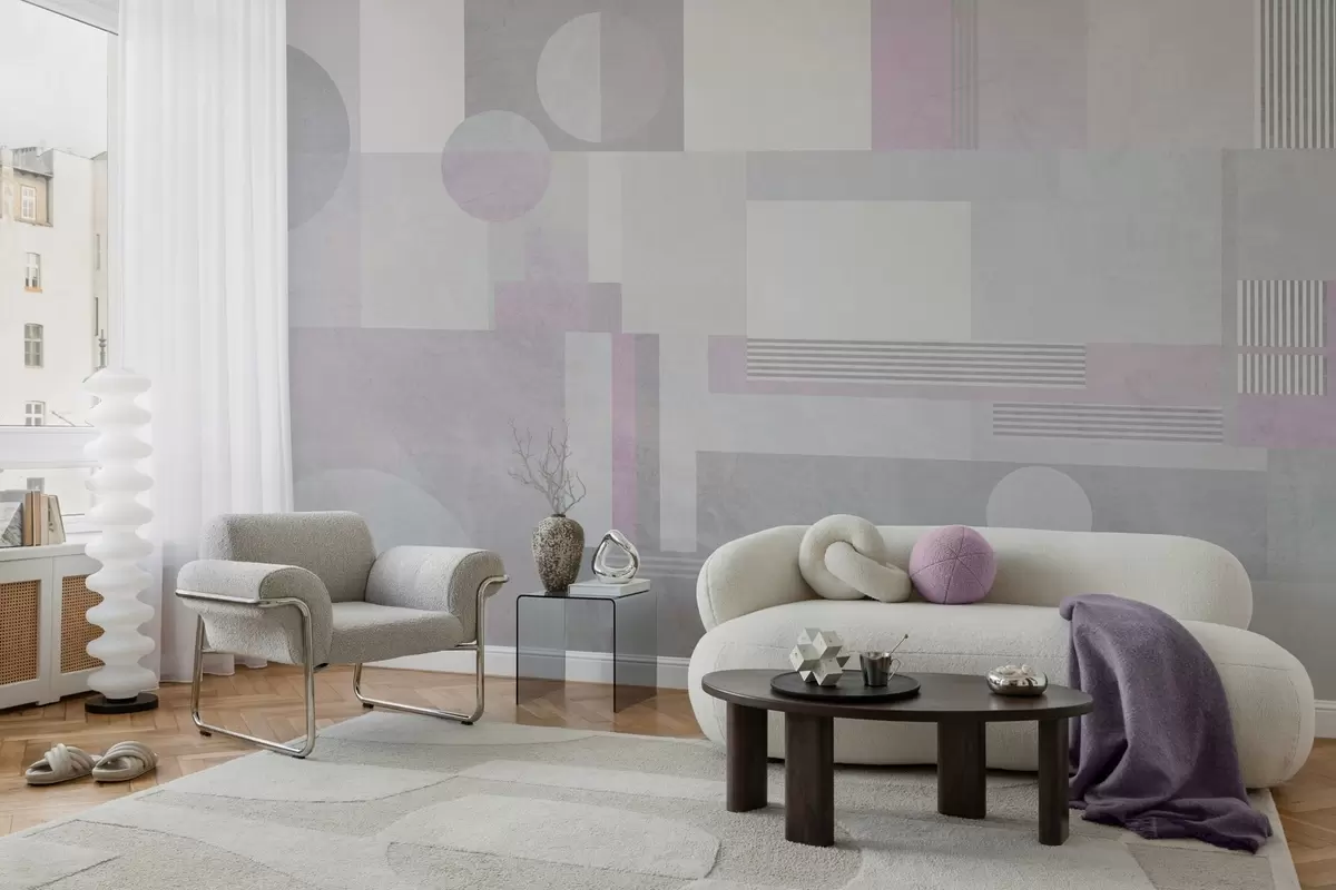 Fotomurales geometría abstracta en tonos grises y lavanda Nr. w04635v1