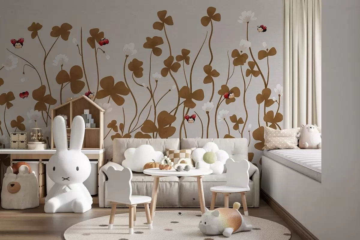 Se puede limpiar suavemente con una esponja suave. Los murales de pared con recubrimiento de barniz pueden limpiarse con agua.