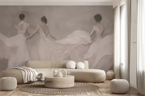 Fotomurales Tres mujeres con vestidos rosas, tela fluida, suavidad Nr. w04709