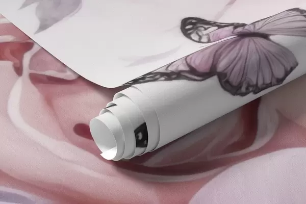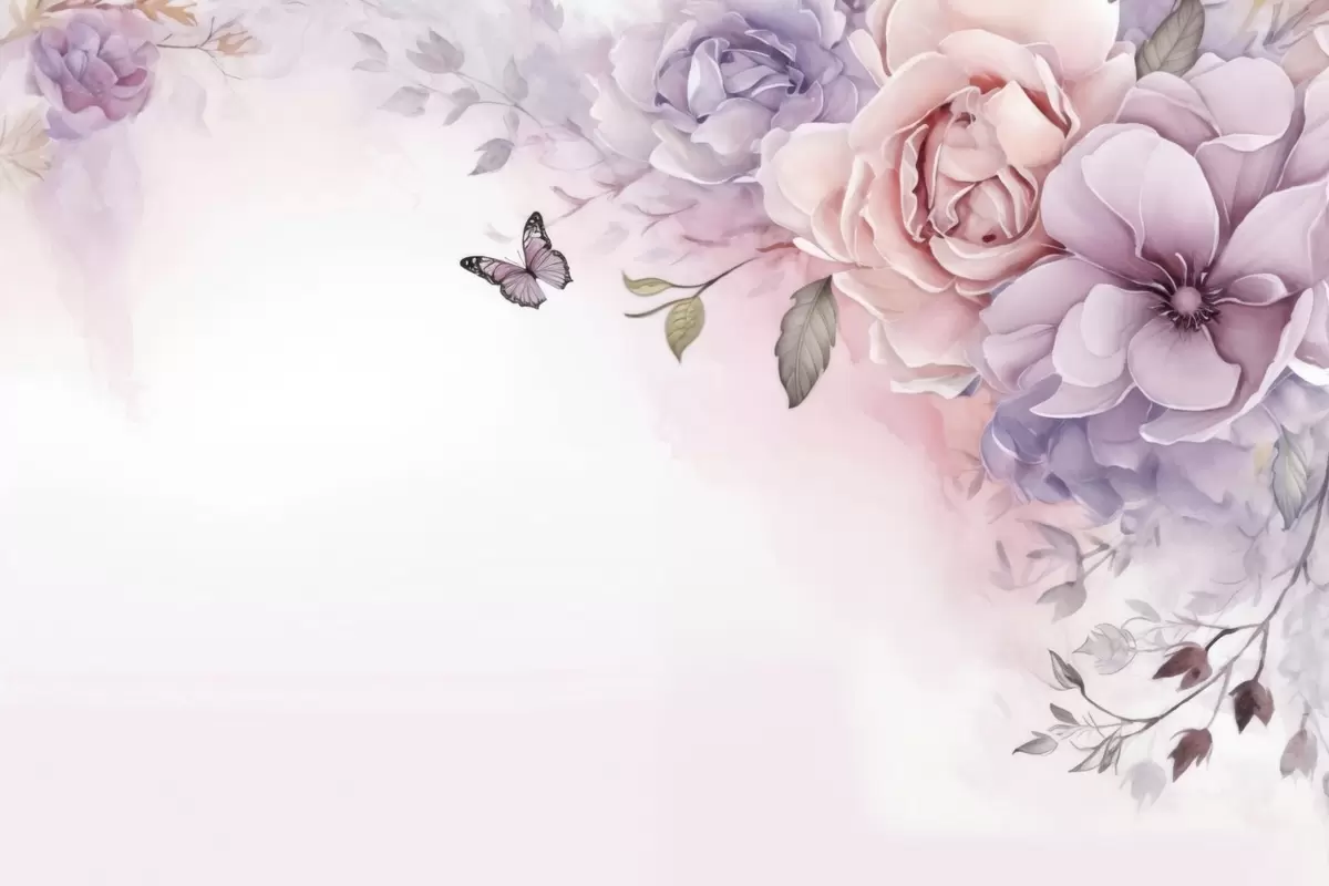 Fotomurales Delicadas flores rosas y lilas con una mariposa Nr. w04711