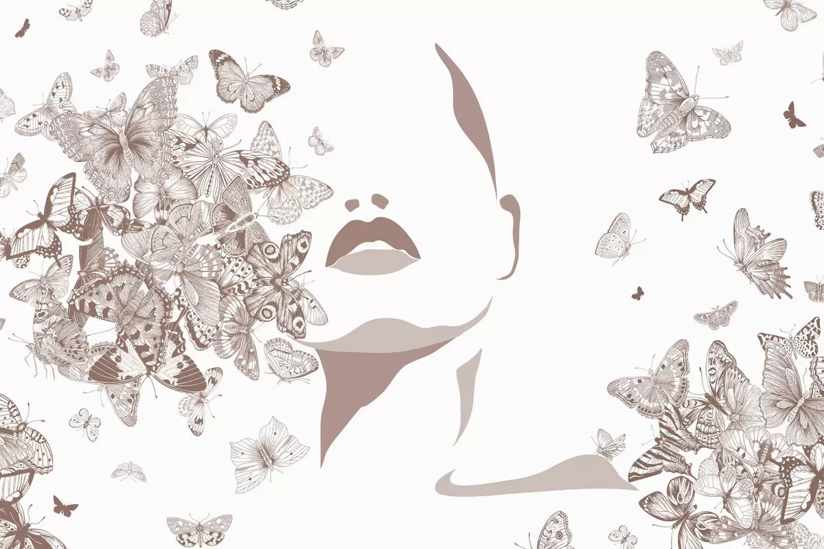Fotomurales Silueta de un rostro entre mariposas Nr. w04778