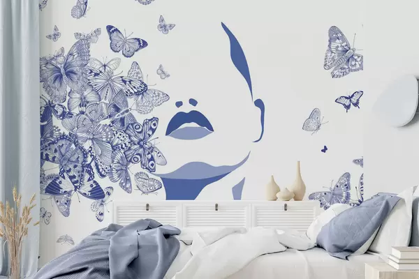 Fotomurales Silueta de un rostro entre mariposas Nr. w04778v1