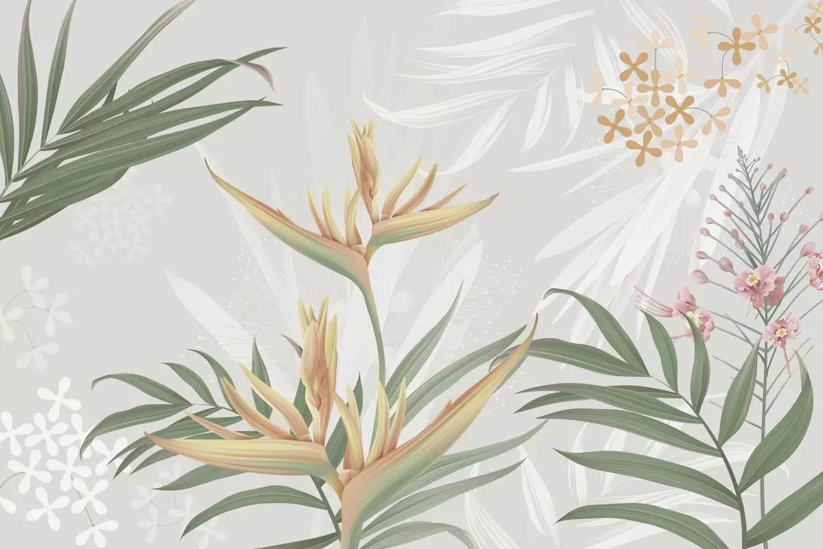 Fotomurales Exóticas flores de Strelitzia entre el follaje Nr. w04783