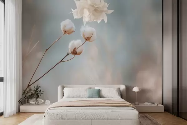 Fotomurales Tres flores de algodón sobre un fondo borroso. Nr. w04820