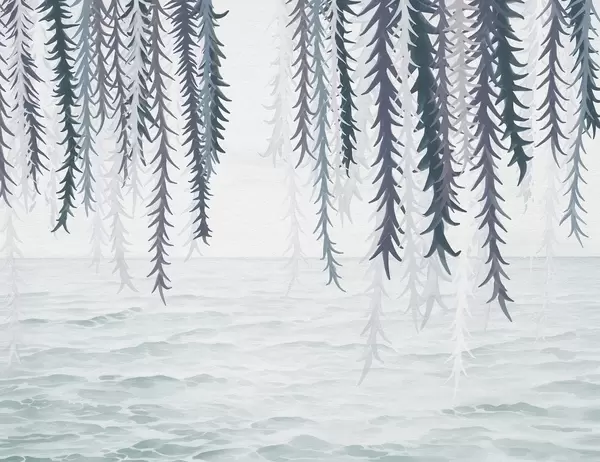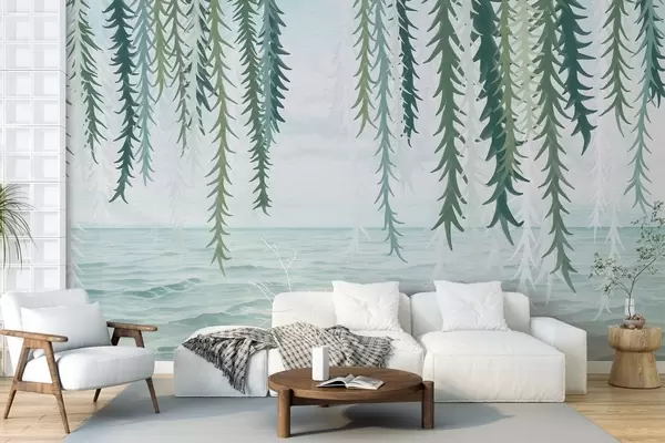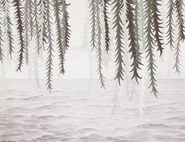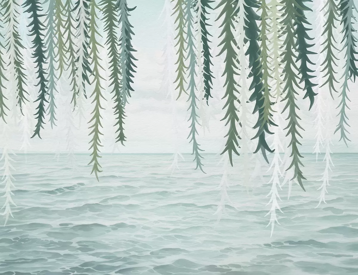 Fotomurales Delicadas enredaderas colgando sobre el agua, estilo acuarela. Nr. w04830