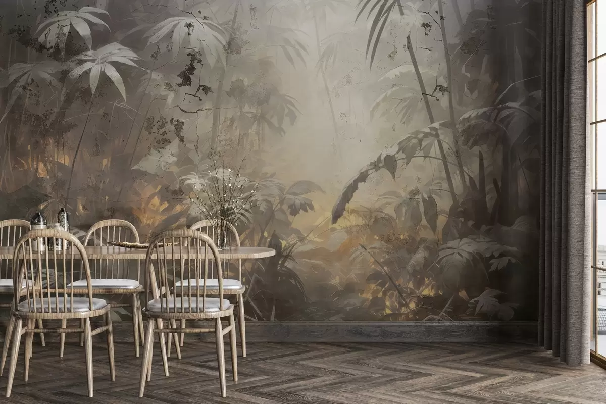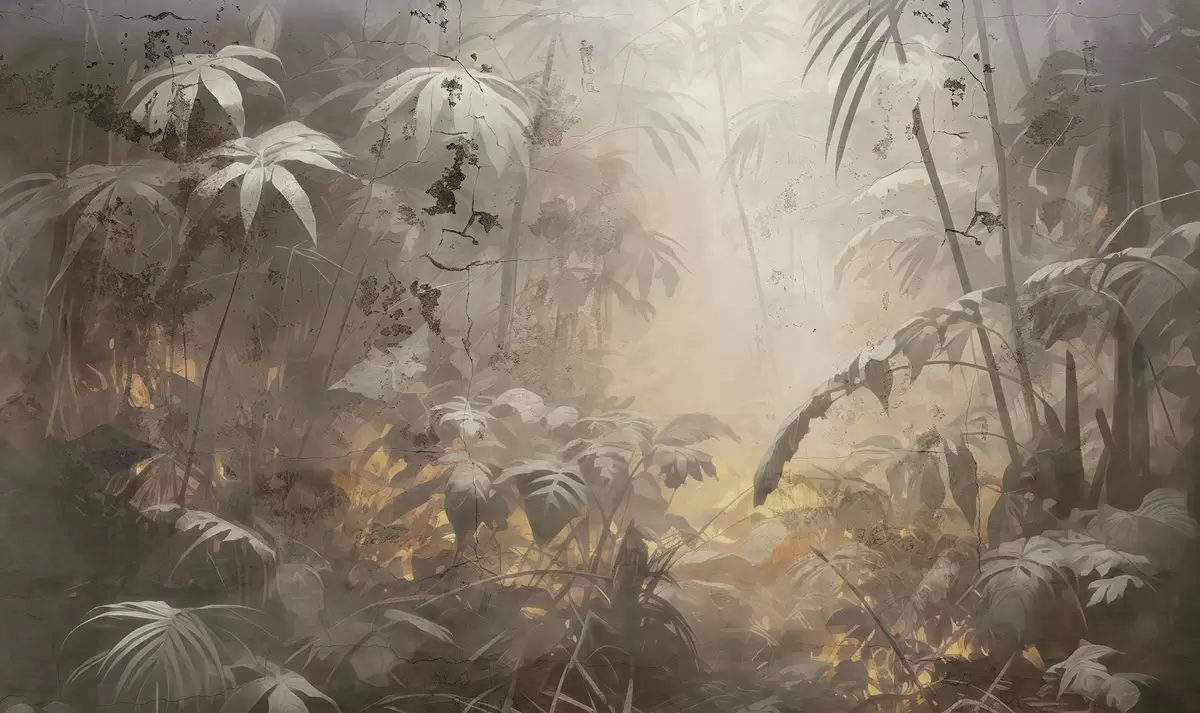 Fotomurales Selva pintada detrás de un muro de hormigón grunge Nr. w04833