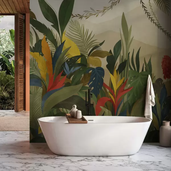 Fotomurales Follaje tropical con hojas grandes y flores. Nr. w05019