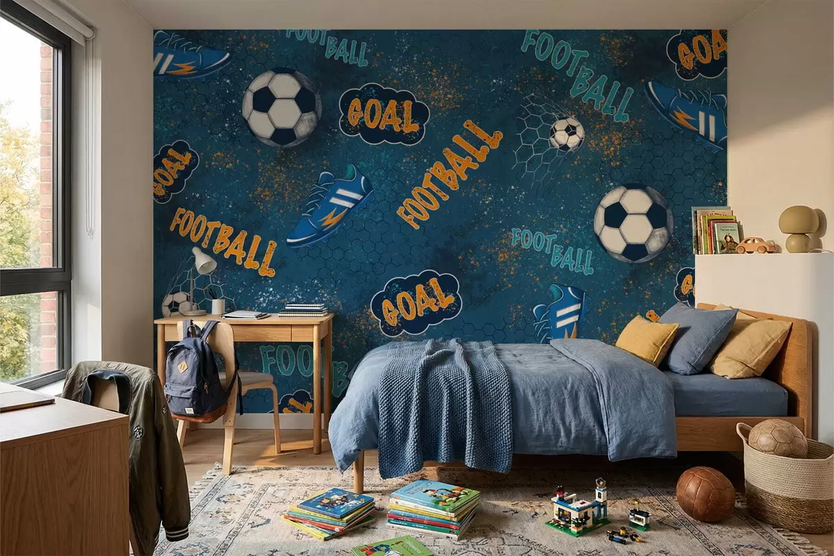 Fotomurales Diseño infantil con pelotas, zapatillas y palabras deportivas. Nr. w05037