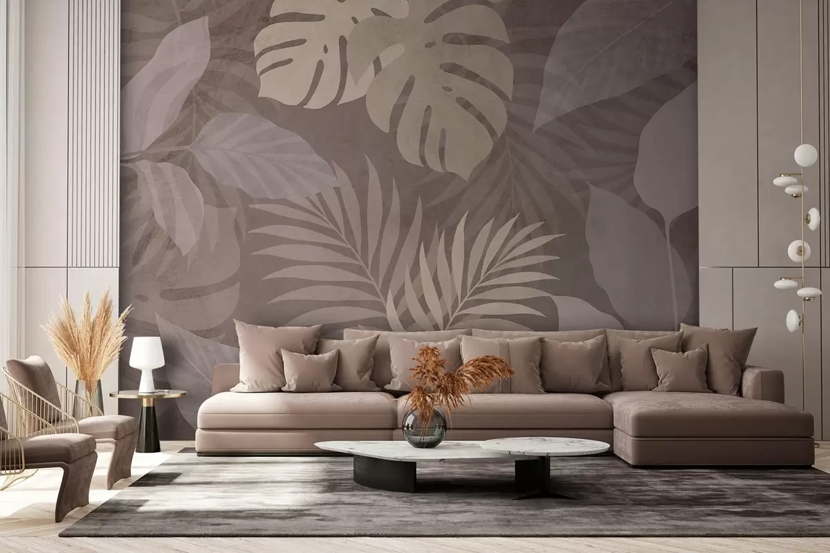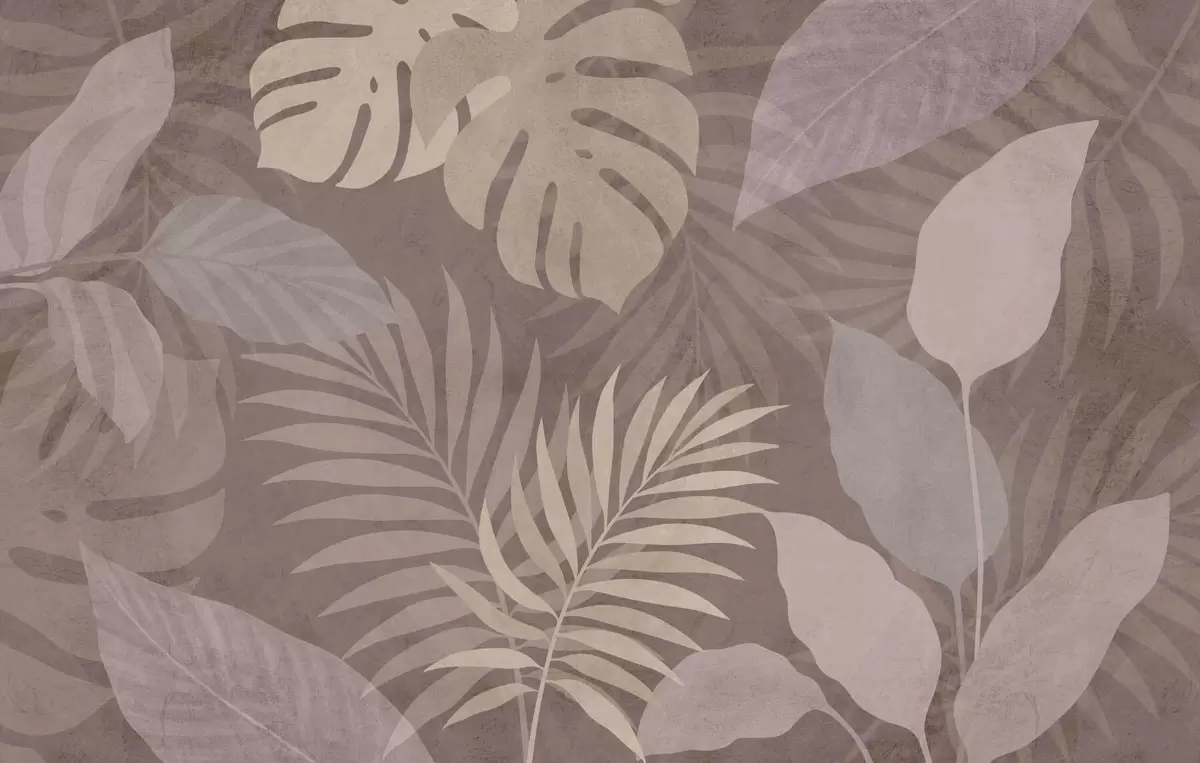 Fotomurales hojas tropicales texturizadas sobre fondo chocolate Nr. w05063v2