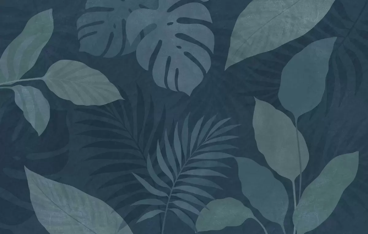 Fotomurales hojas tropicales texturizadas sobre un fondo azul oscuro Nr. w05063v3