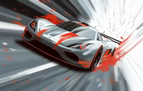 Fotomurales Coche deportivo dinámico en estilo de dibujo digital con detalles en azul. Nr. w05069