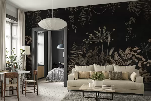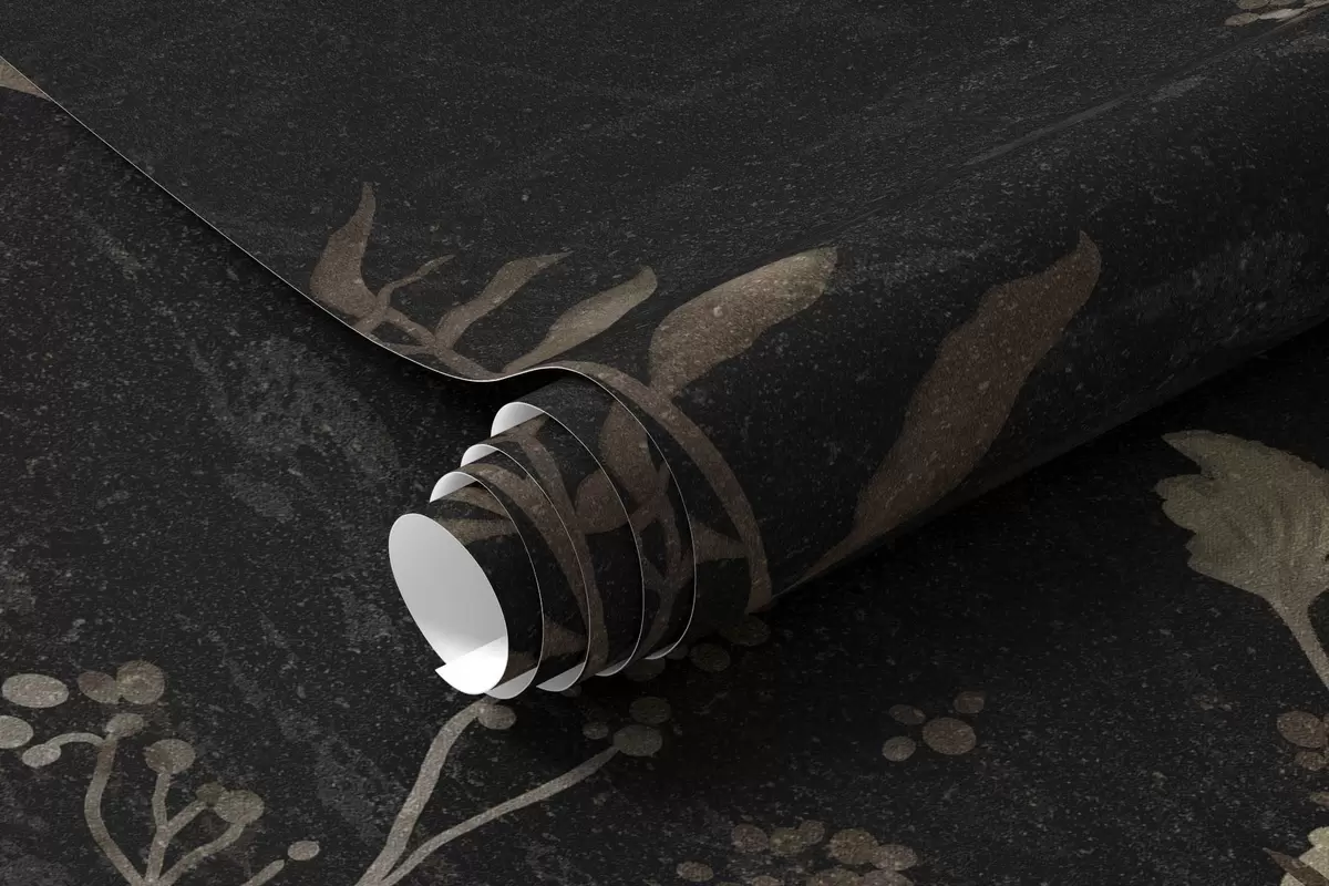 Fotomurales Diseño botánico oscuro con flores y hojas. Nr. w05092