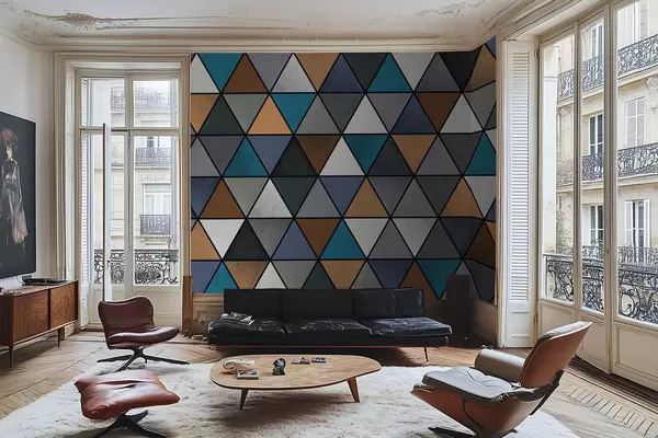 Fotomurales Patrón geométrico triangular en tonos azules y cálidos. Nr. w05095