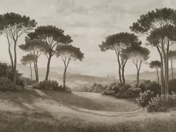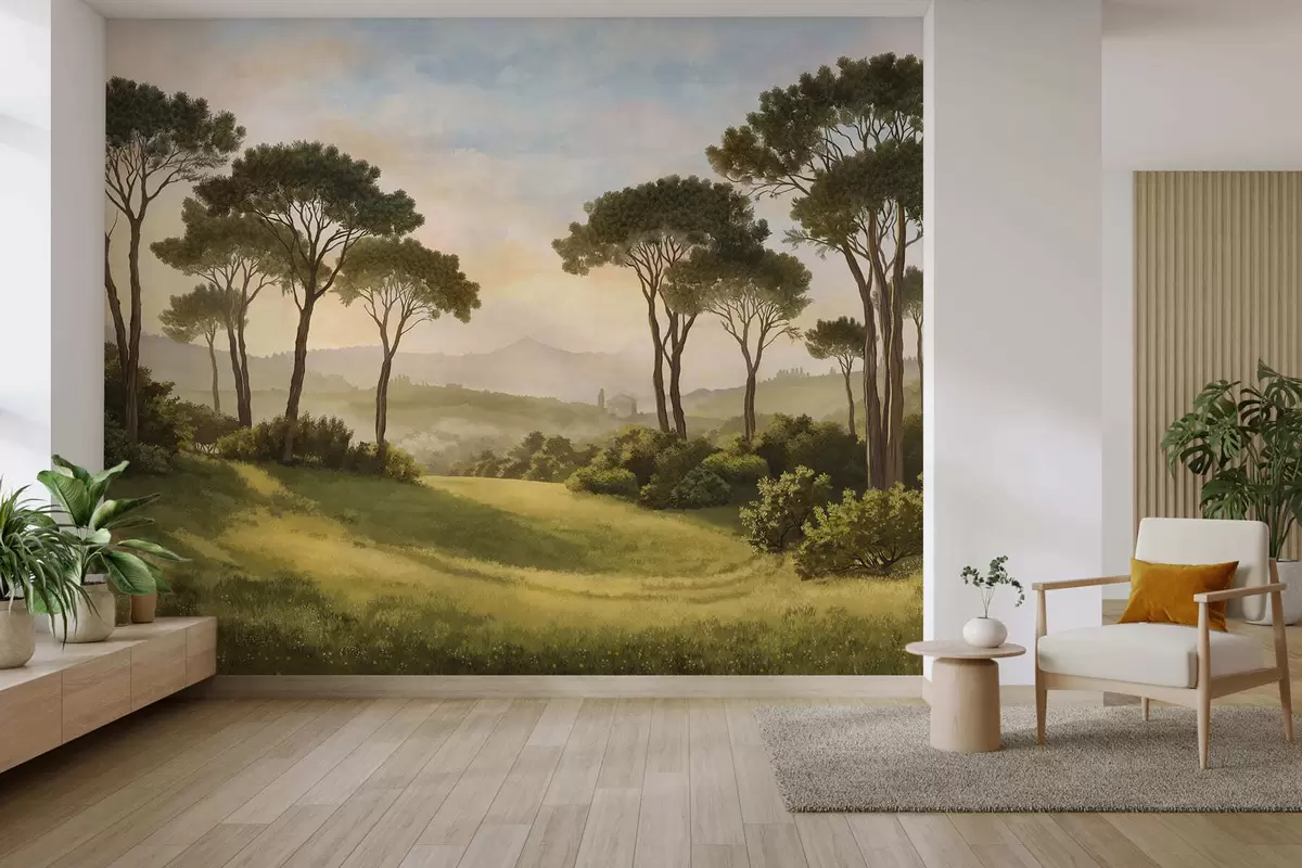 Fotomurales Paisaje con árboles bajo la cálida luz del atardecer Nr. w05122