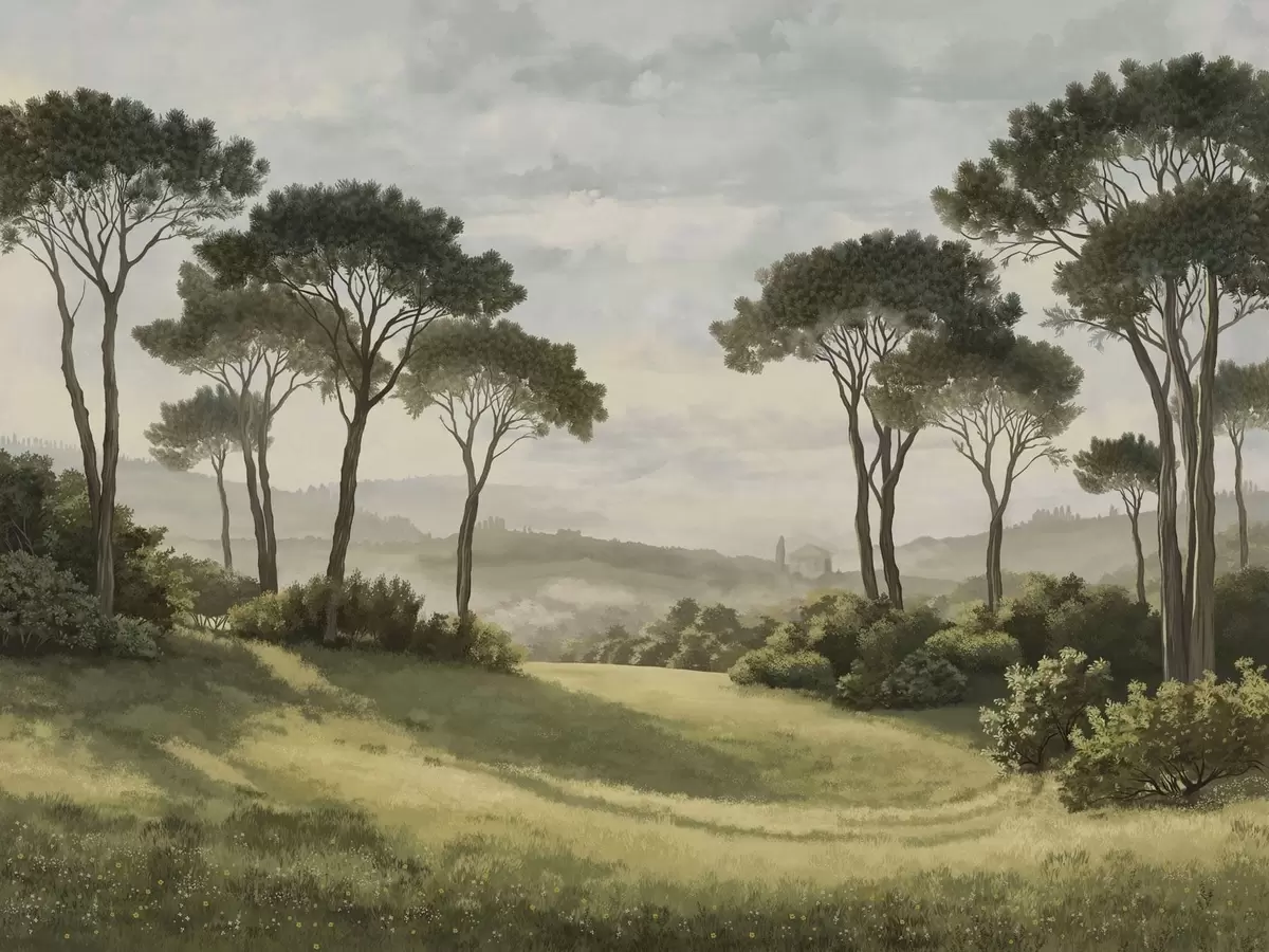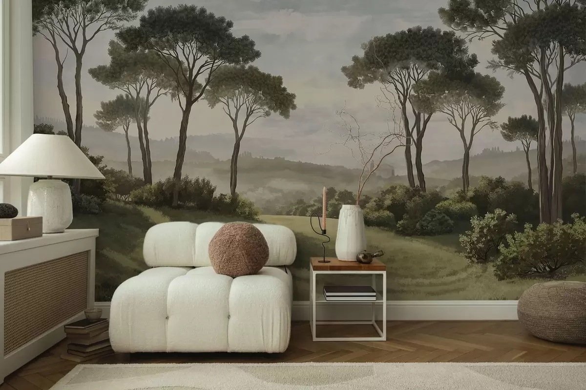Fotomurales Paisaje con árboles, pradera y neblina en la lejanía Nr. w05122v1