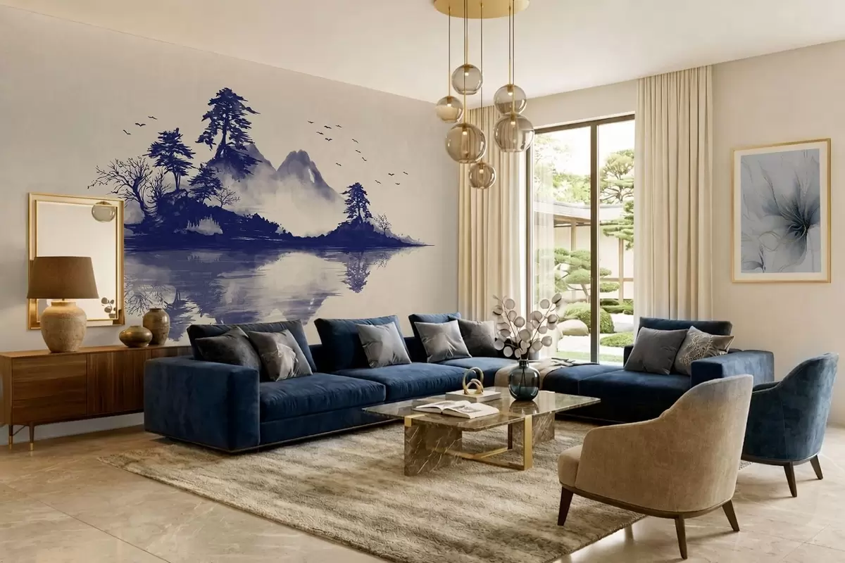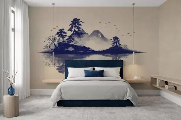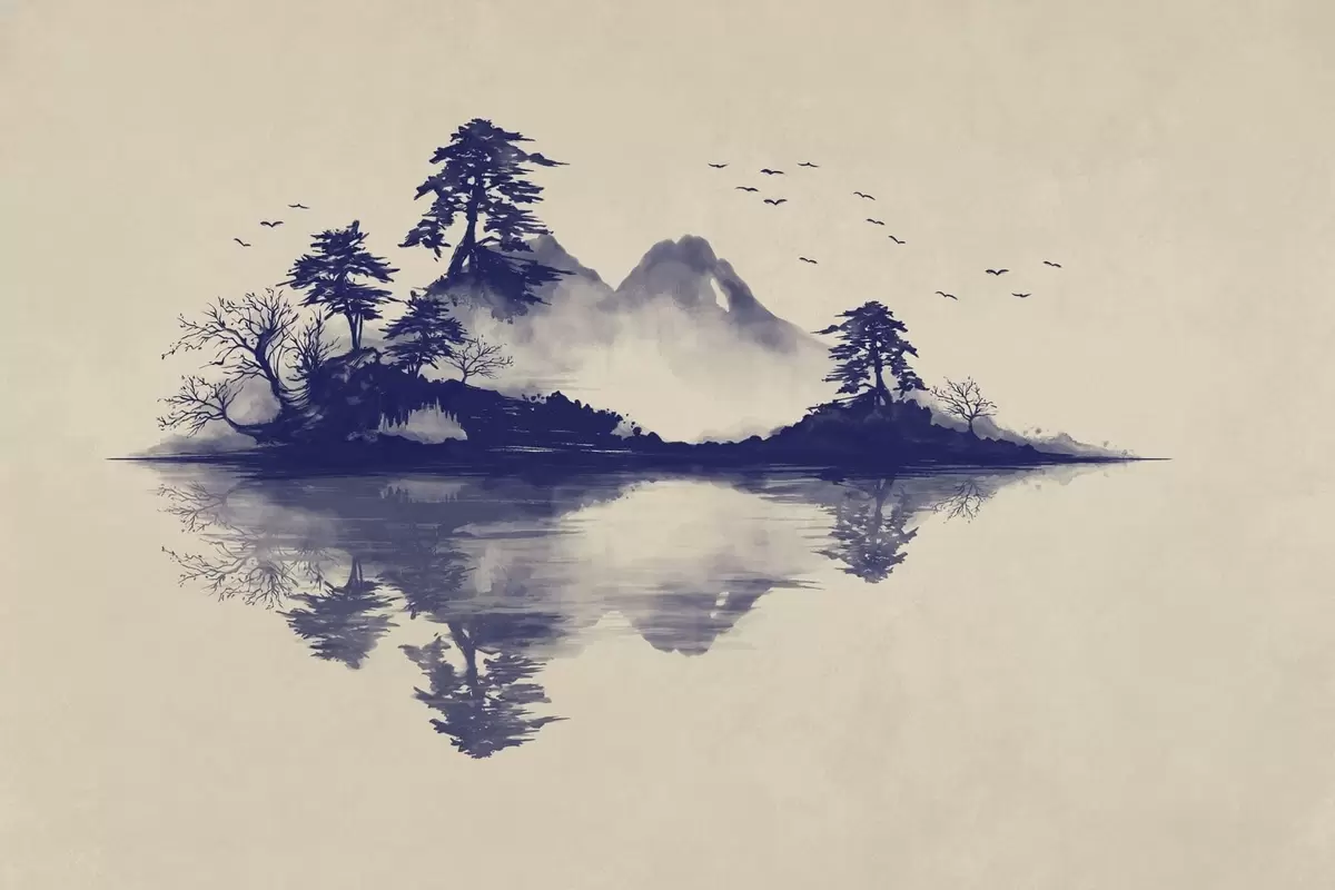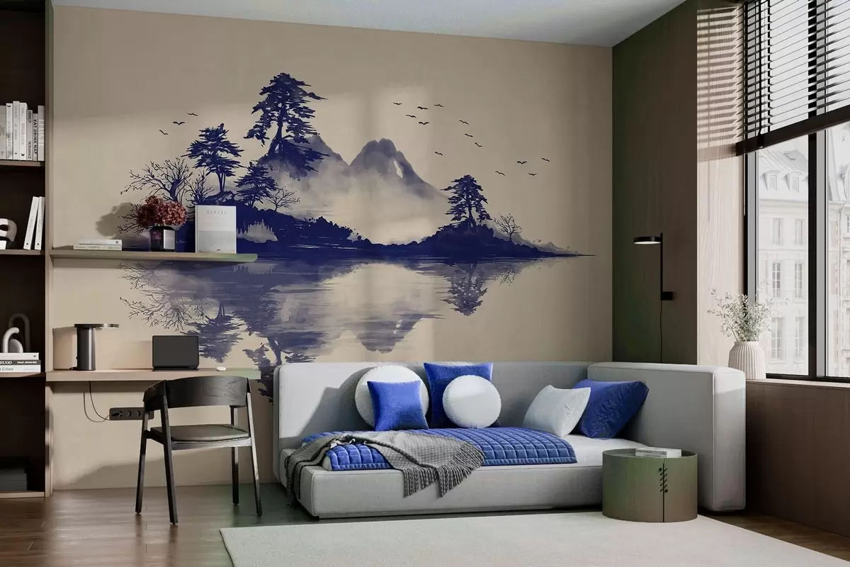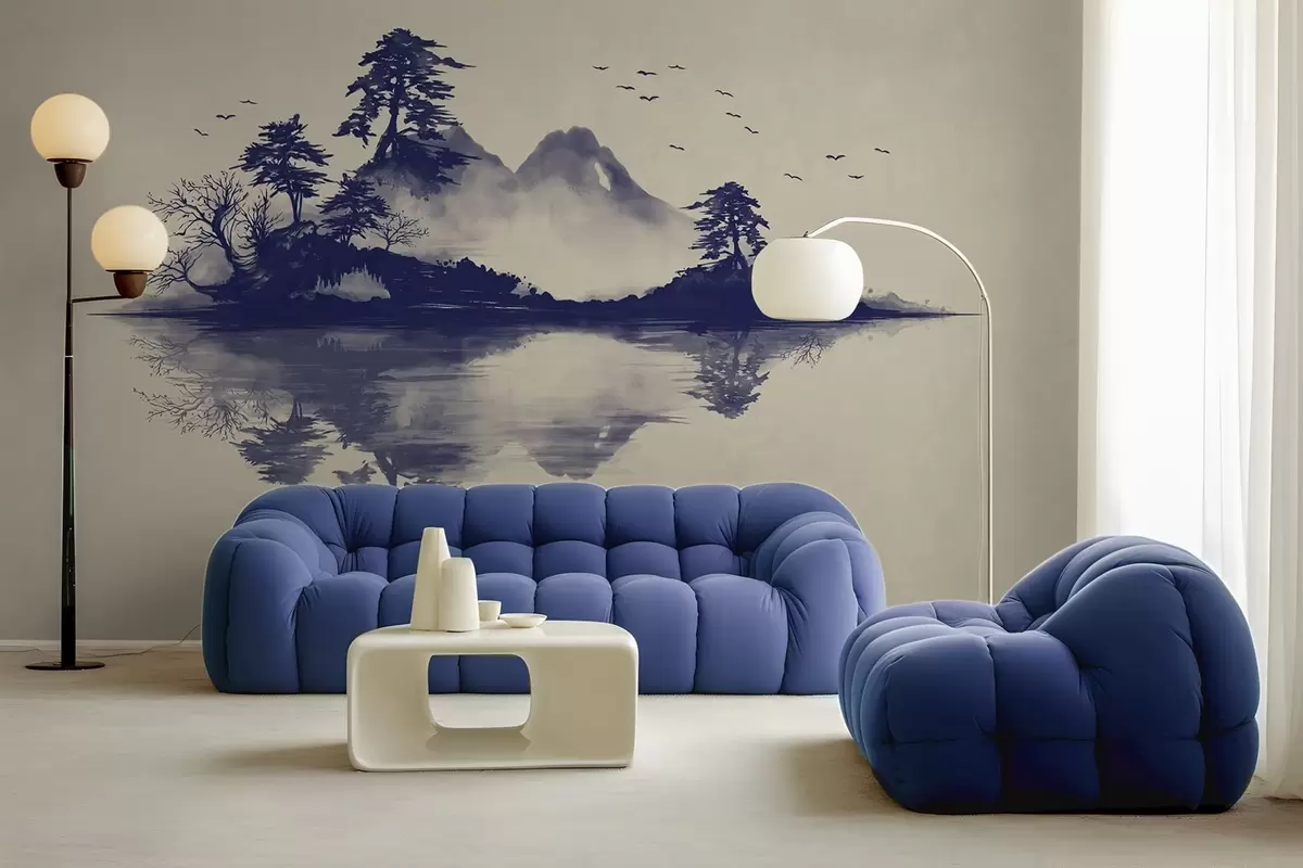 Fotomurales Paisaje montañoso en sumi-e en tonos azules Nr. w05124v2