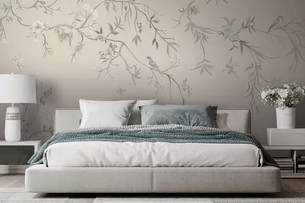 Fotomurales Ramas florales con pájaros sobre un fondo claro Nr. w05127v7