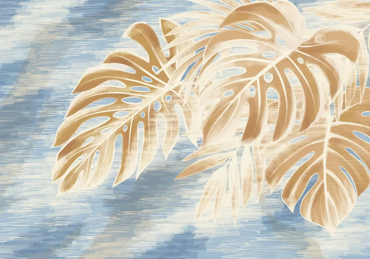 Fotomurales Hojas en tonos arena claros sobre fondo azul. Nr. w05130v1