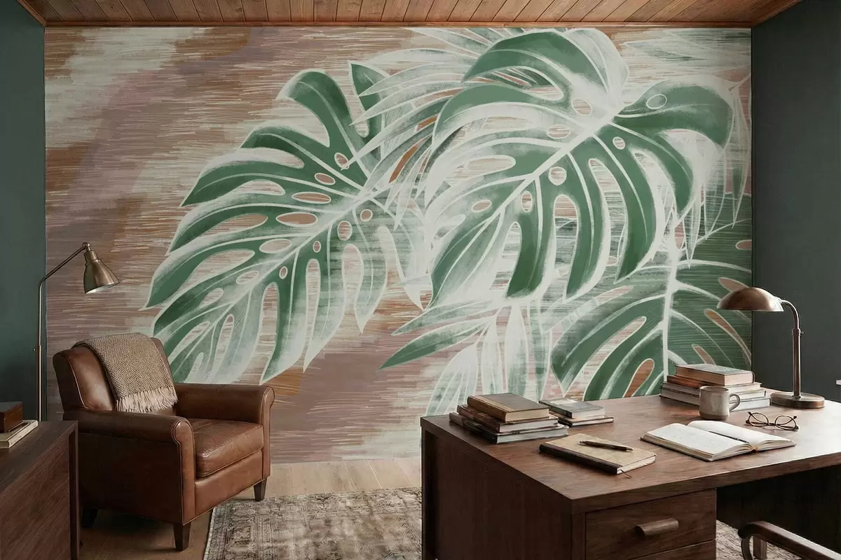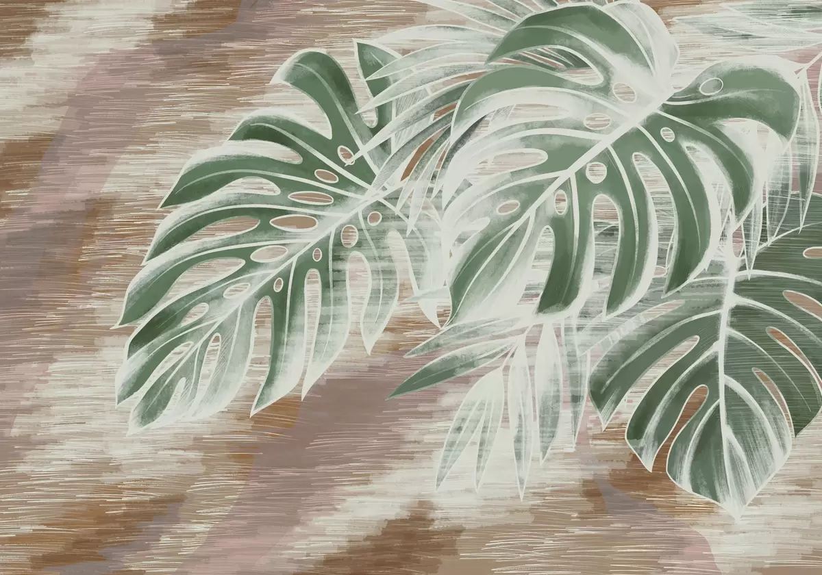 Fotomurales Hojas verdes sobre una base abstracta de textura cálida. Nr. w05130v3