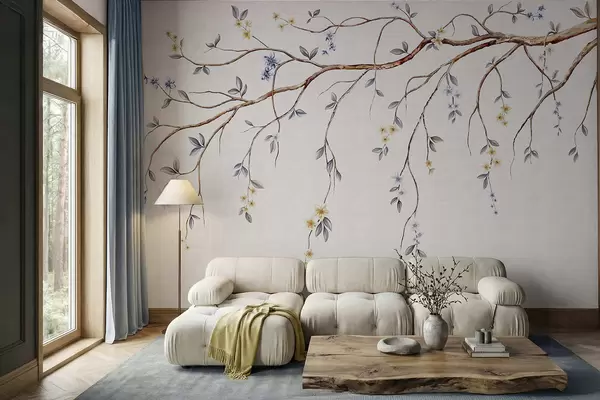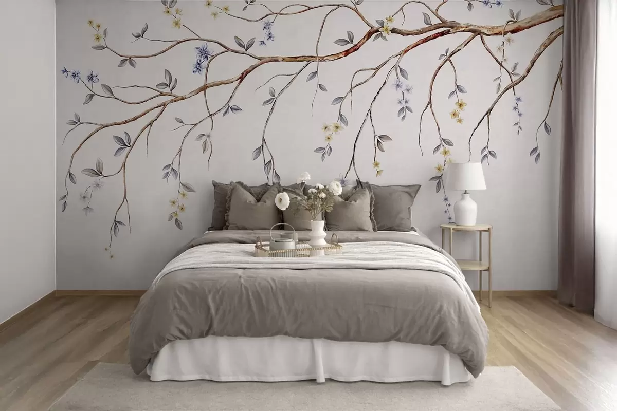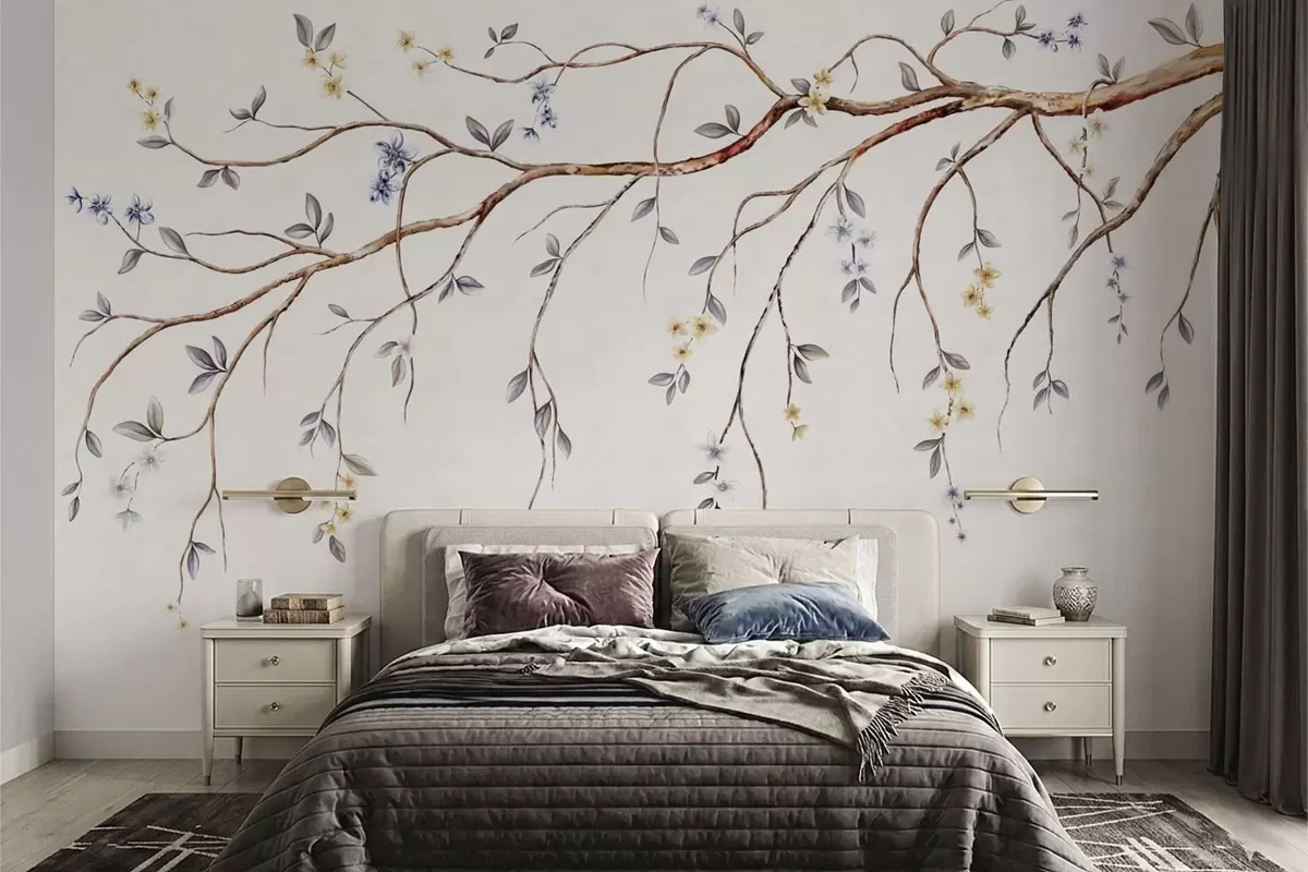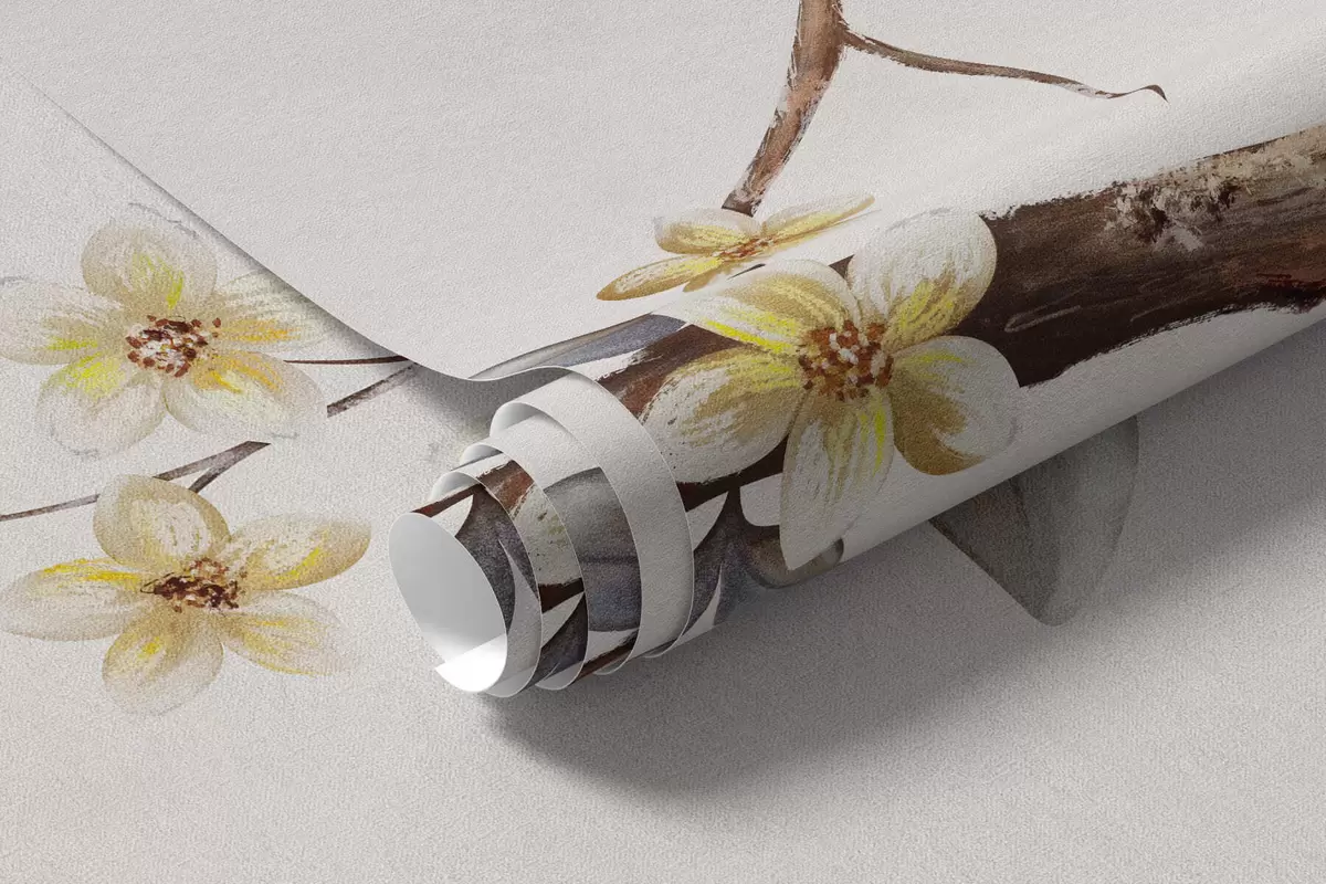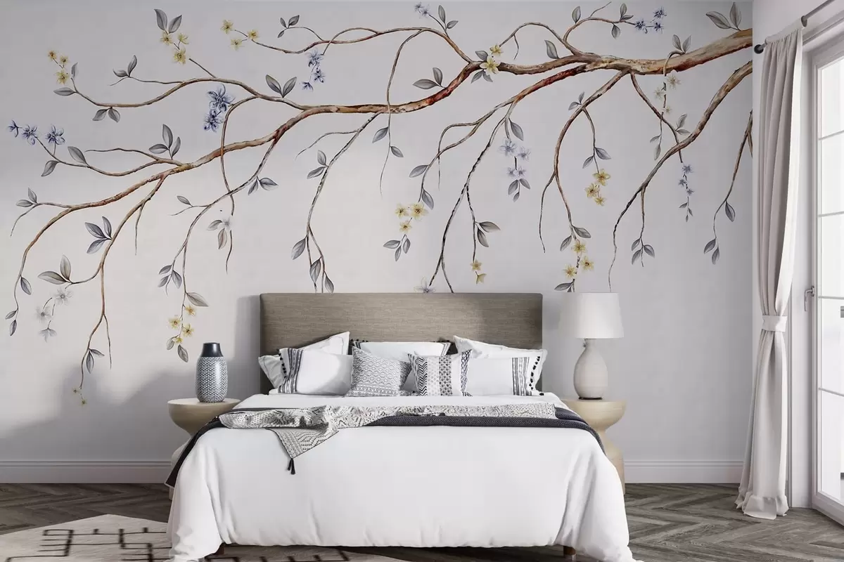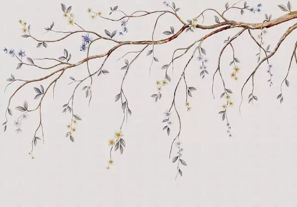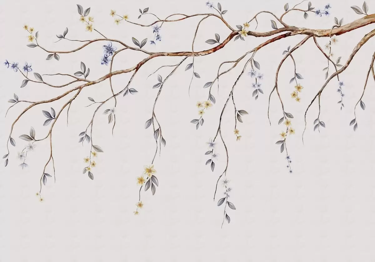 Fotomurales Ramas delgadas con pequeñas flores sobre fondo claro. Nr. w05145