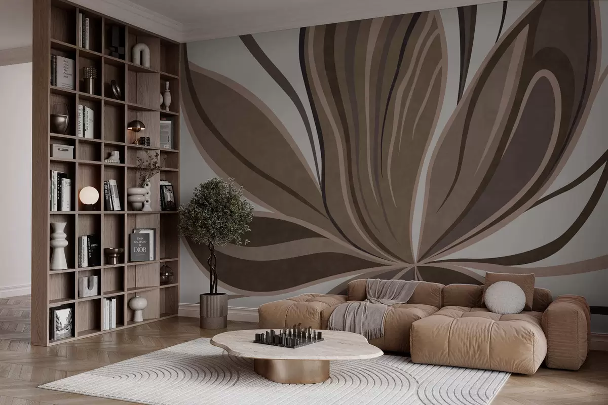 Fotomurales Flor estilizada con líneas fluidas en tonos marrones Nr. w05147