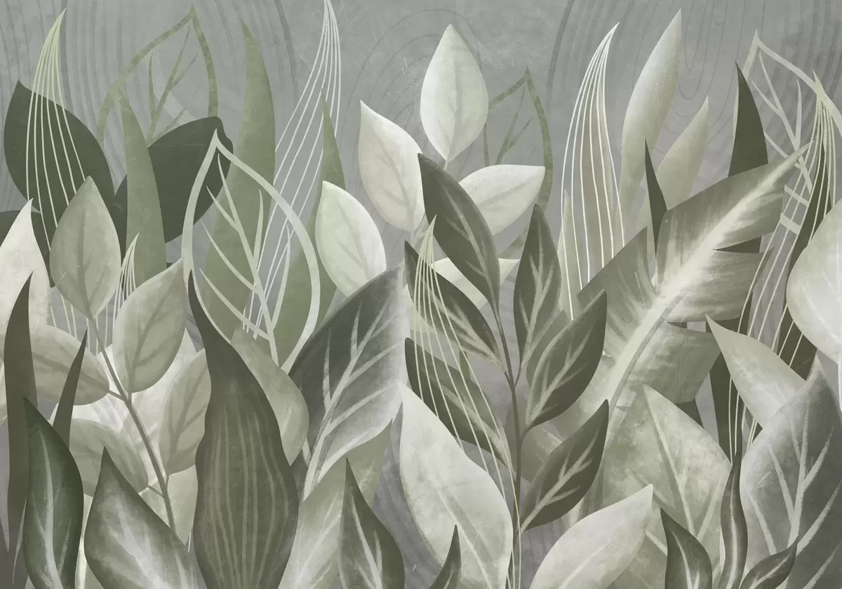 Fotomurales Hojas abstractas en tonos gris verdosos Nr. w05148v1
