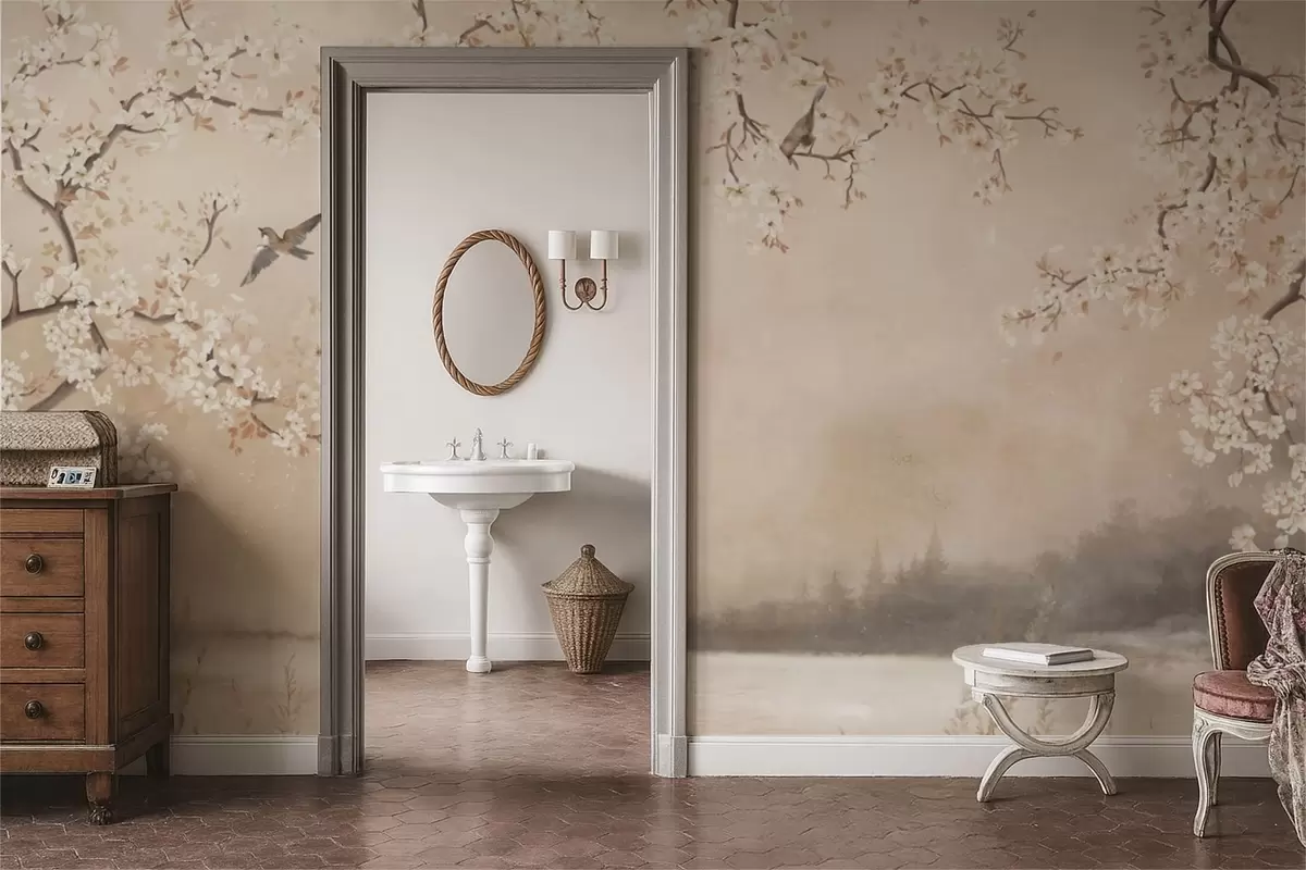 Se puede limpiar suavemente con una esponja suave. Los murales de pared con recubrimiento de barniz pueden limpiarse con agua.