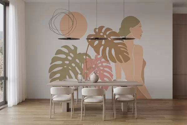 Fotomurales Silueta de una mujer cerca de hojas tropicales Nr. w05192v1