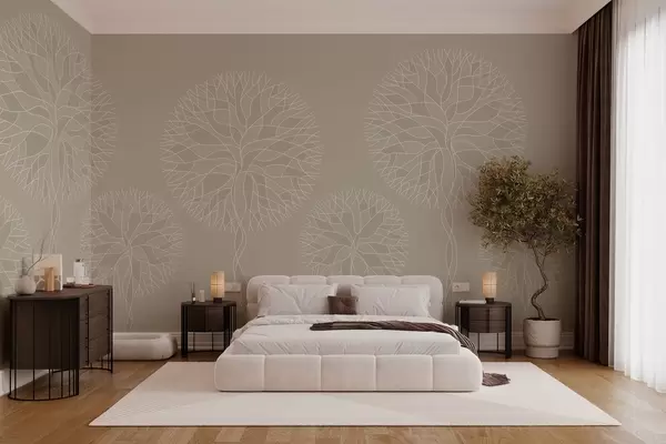 Fotomurales Árboles lineales fantásticos con copas frondosas en tonos beige. Nr. w05213v3