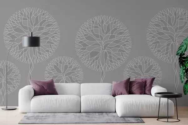 Fotomurales Árboles lineales fantásticos con copas frondosas en tonos grises medios. Nr. w05213v5