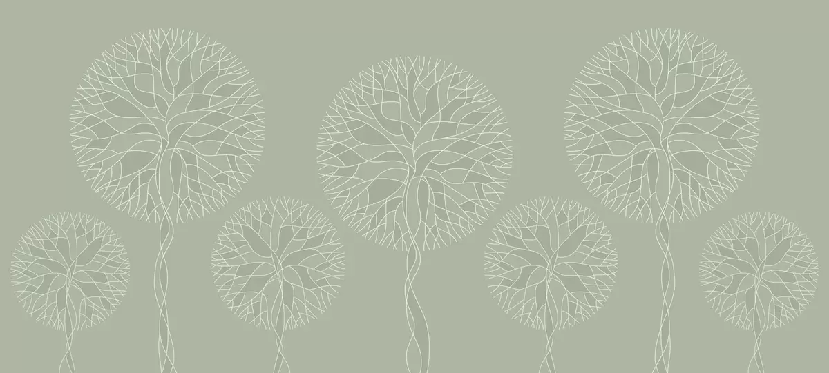 Fotomurales Árboles lineales fantásticos con copas frondosas en tonos verde claro. Nr. w05213v6