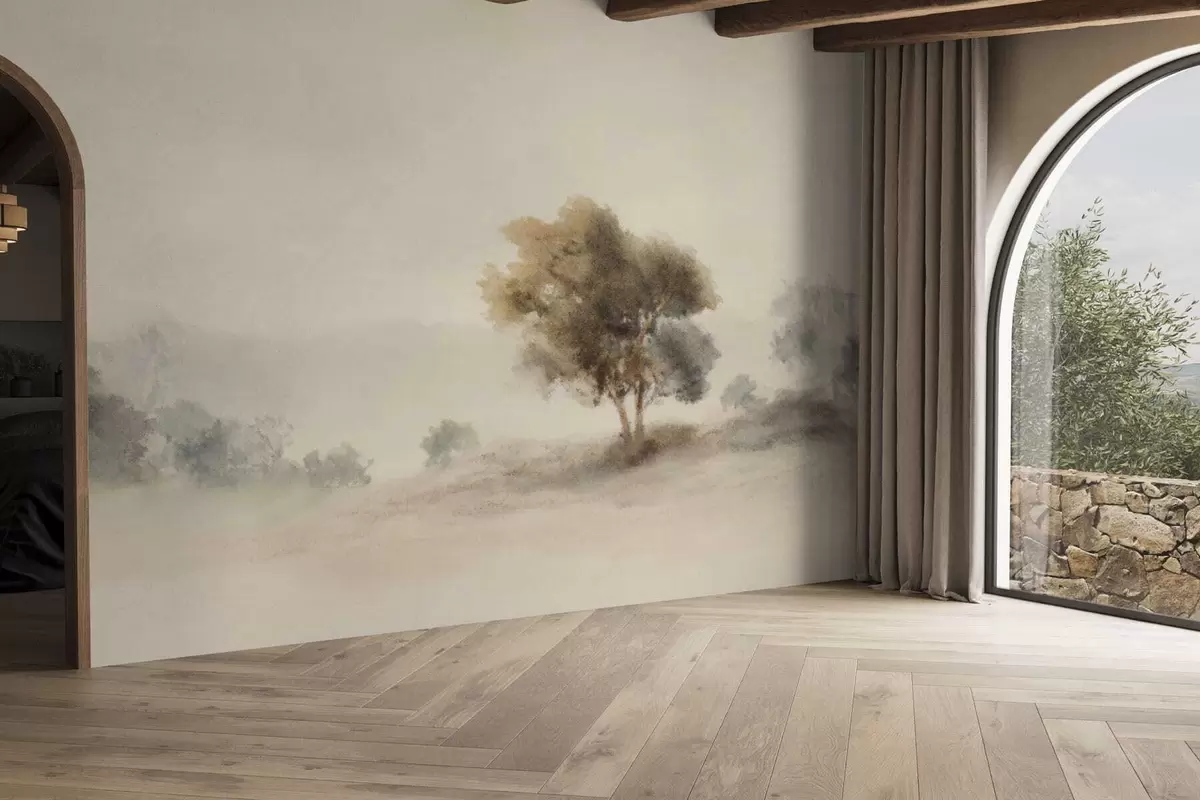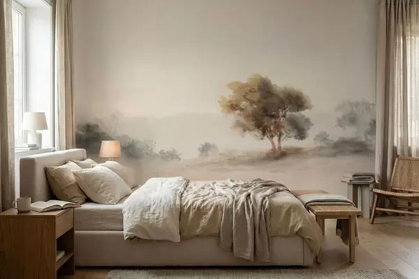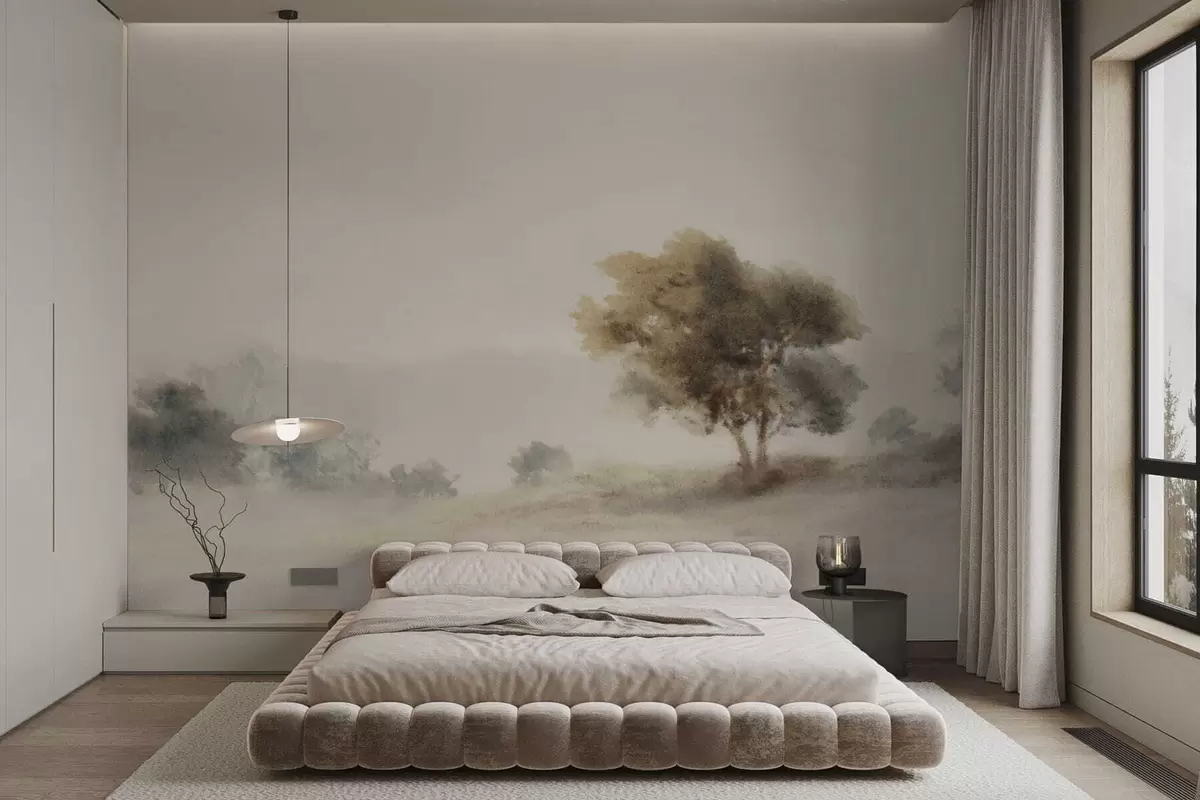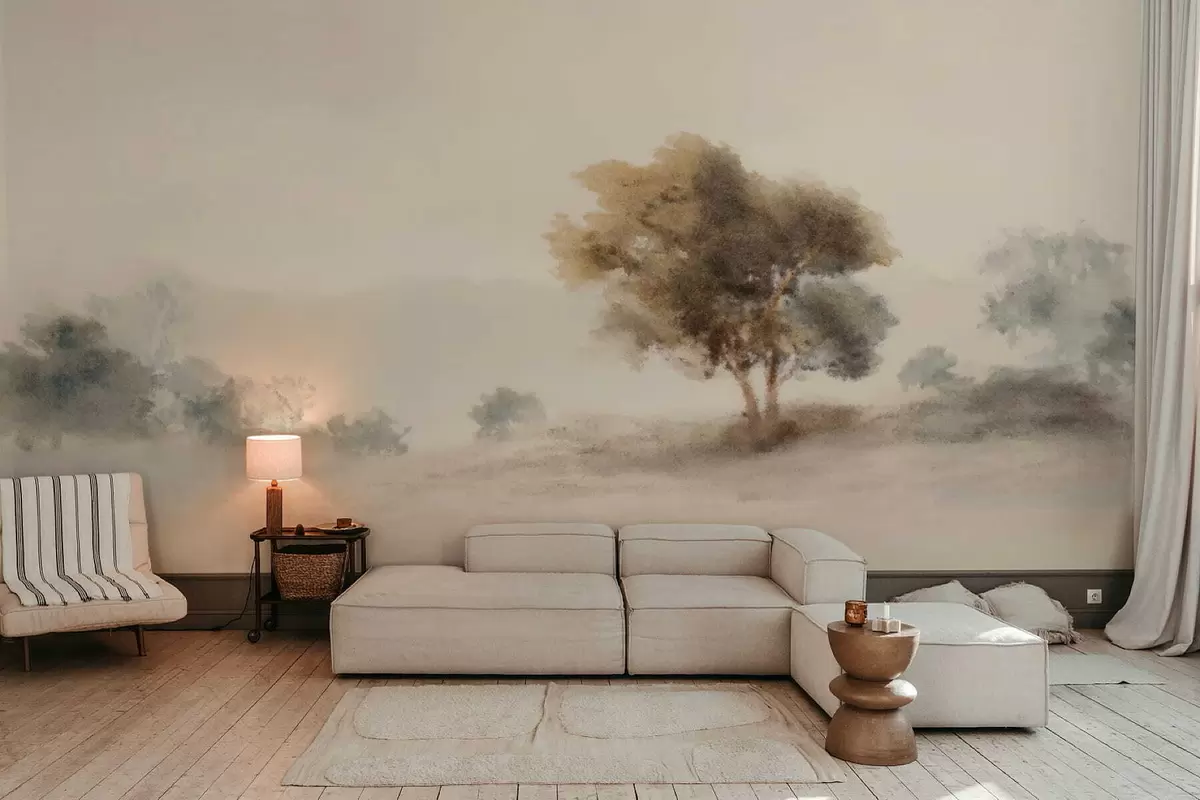 Fotomurales Paisaje minimalista con un árbol solitario en la niebla. Nr. w05223