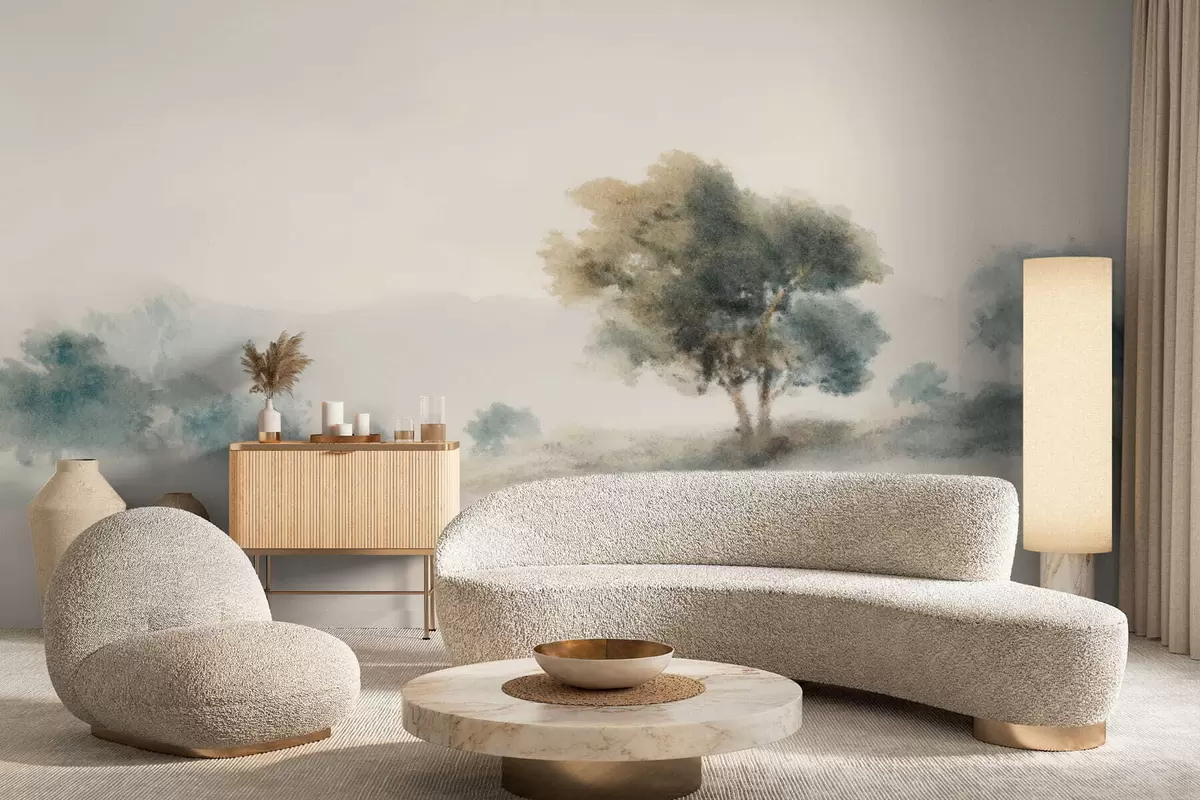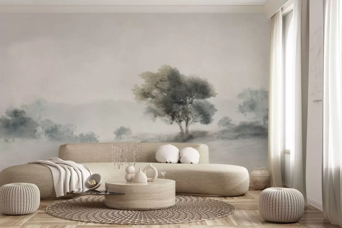 Fotomurales Paisaje tranquilo con un árbol y formas suaves y difuminadas. Nr. w05223v1
