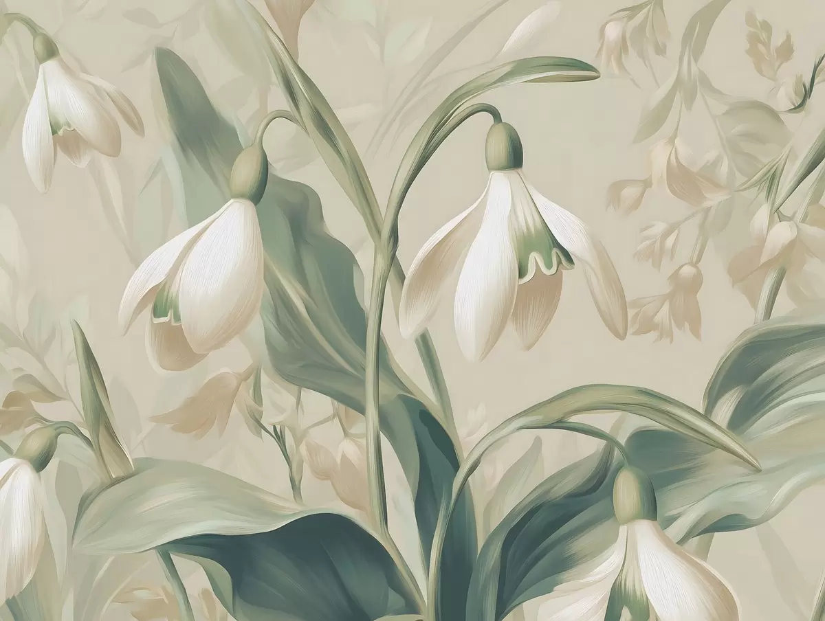 Fotomurales flores de nieve en flor sobre un fondo beige Nr. w05234