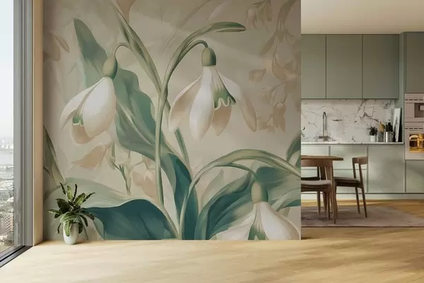 Fotomurales flores de nieve en flor sobre un fondo beige Nr. w05234