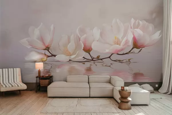Fotomurales Rama de magnolia con flores sobre el reflejo de aguas tranquilas Nr. w05353v1