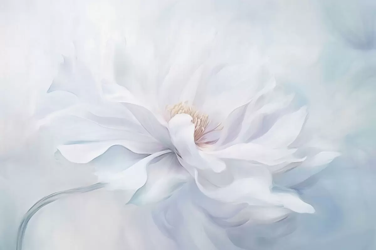 Fotomurales Flor blanca suave con pétalos fluidos sobre fondo azul. Nr. w05354