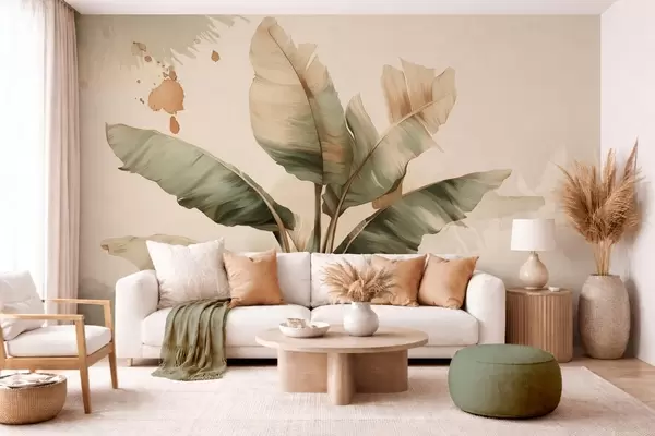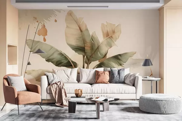 Fotomurales un gran y pintoresco racimo de hojas de plátano con toques de estilo retro Nr. w05384