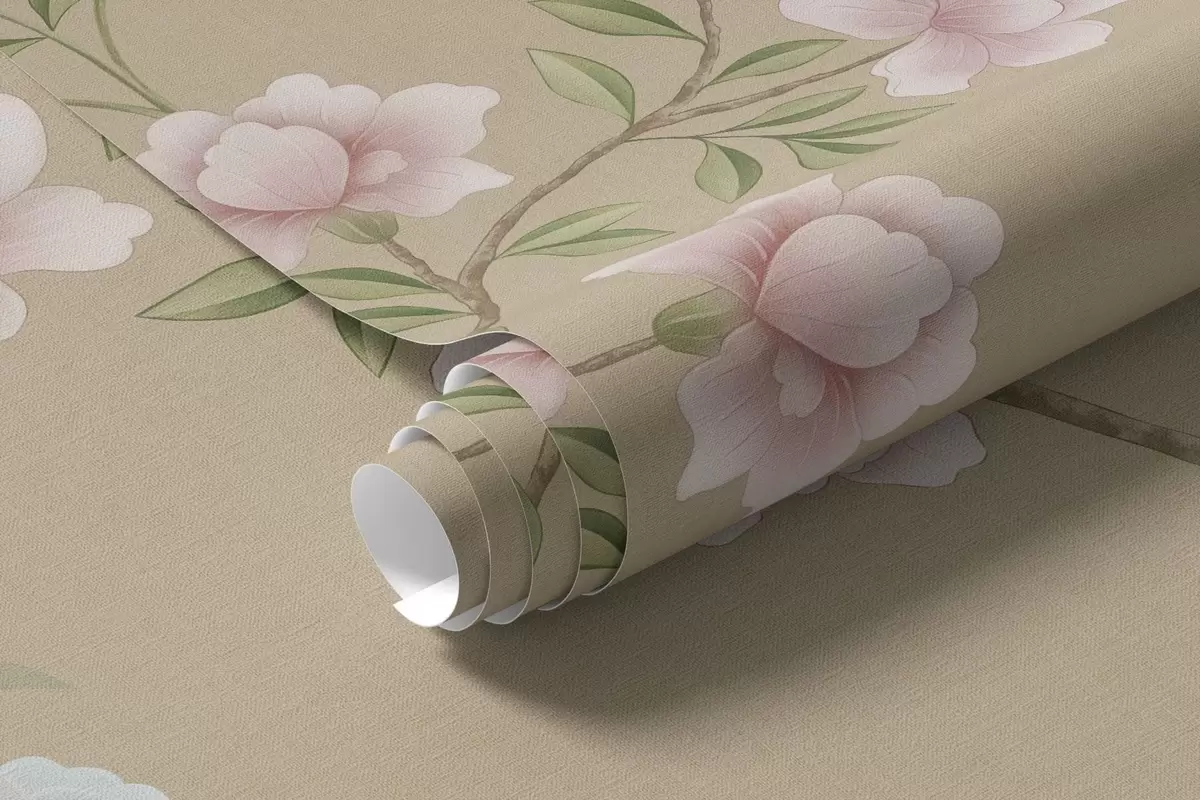 Fotomurales Ramas en flor con pájaros sobre un fondo beige cálido Nr. w05416v2