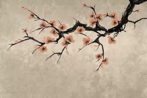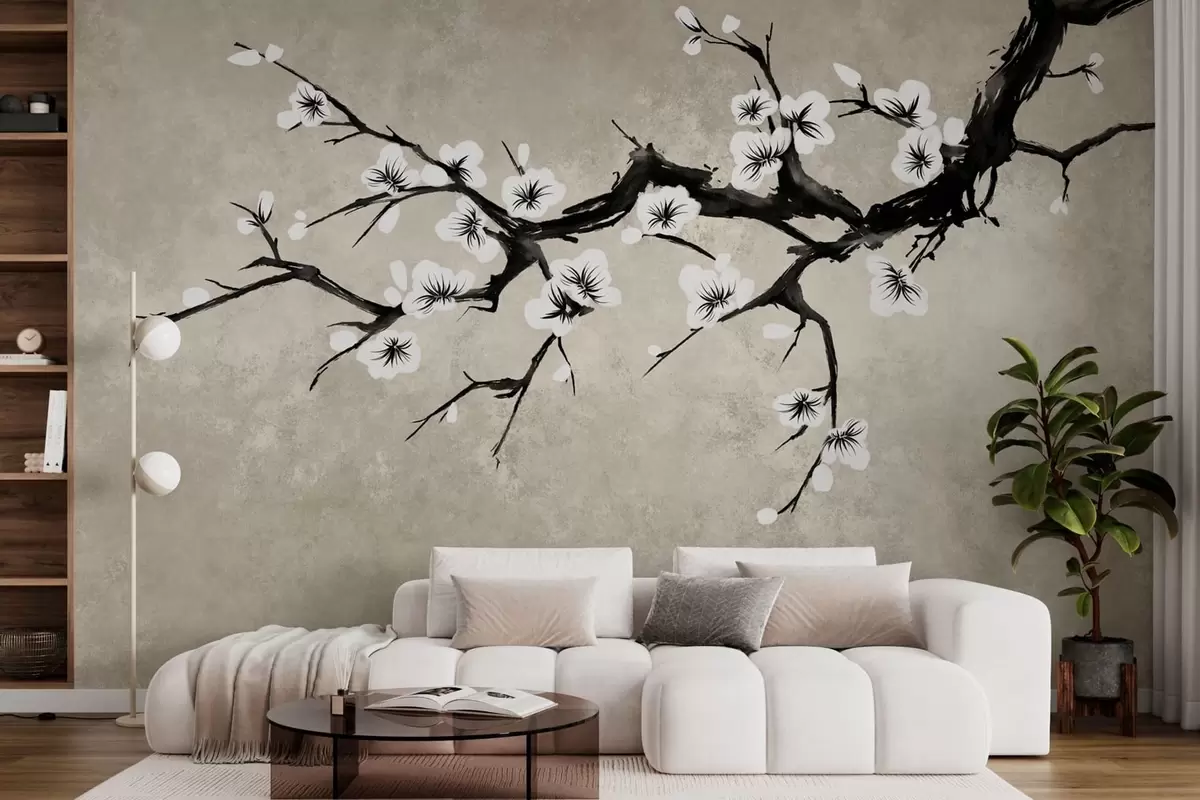 Fotomurales Rama con flores blancas en estilo minimalista Nr. w05425