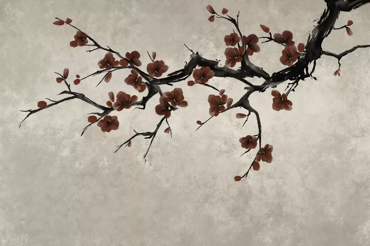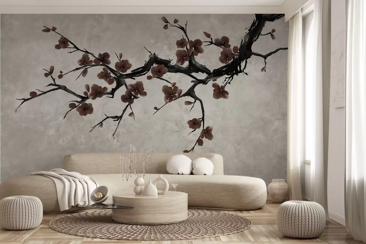 Fotomurales Rama con flores de color rojo oscuro sobre un fondo neutro Nr. w05425v1