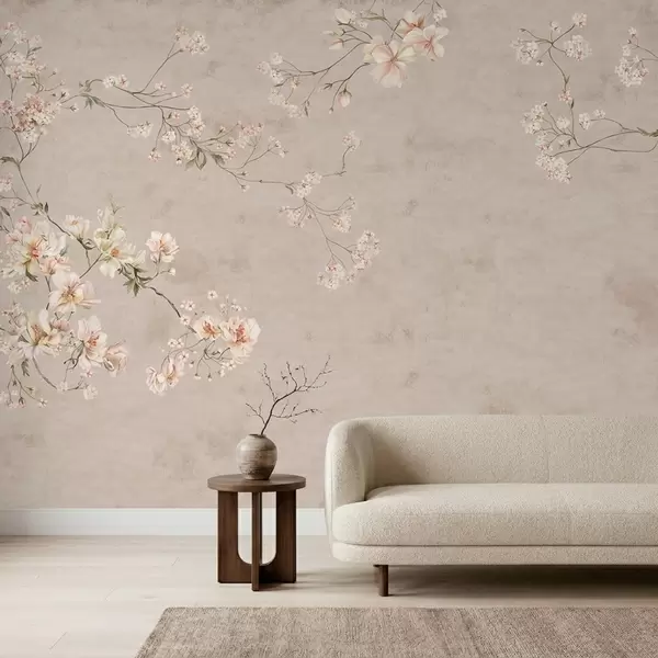 Fotomurales Ramas florales delicadas de estilo chinoiserie sobre fondo claro Nr. w05427
