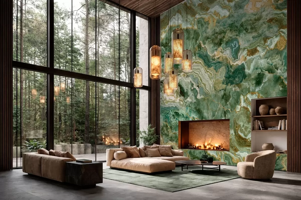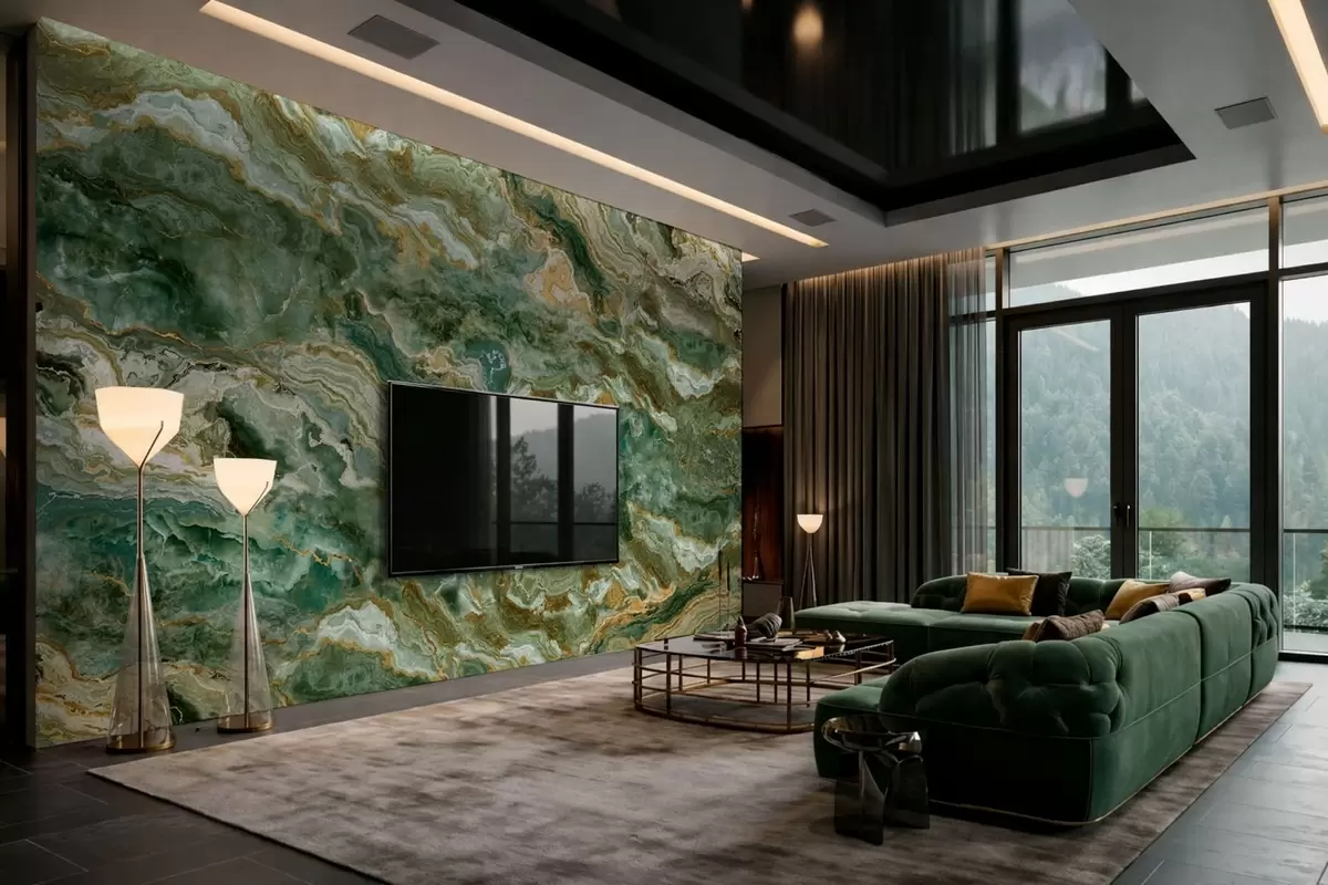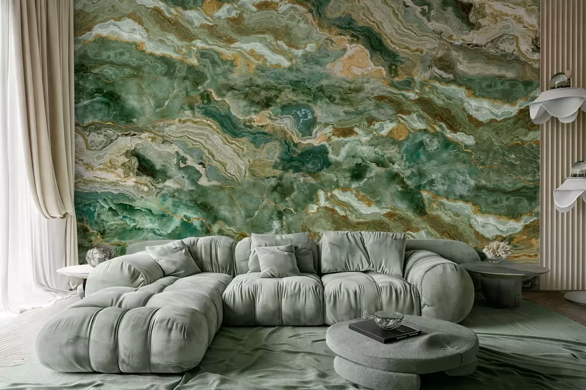 Fotomurales Textura de ónix verde con vetas fluidas en capas Nr. w05429