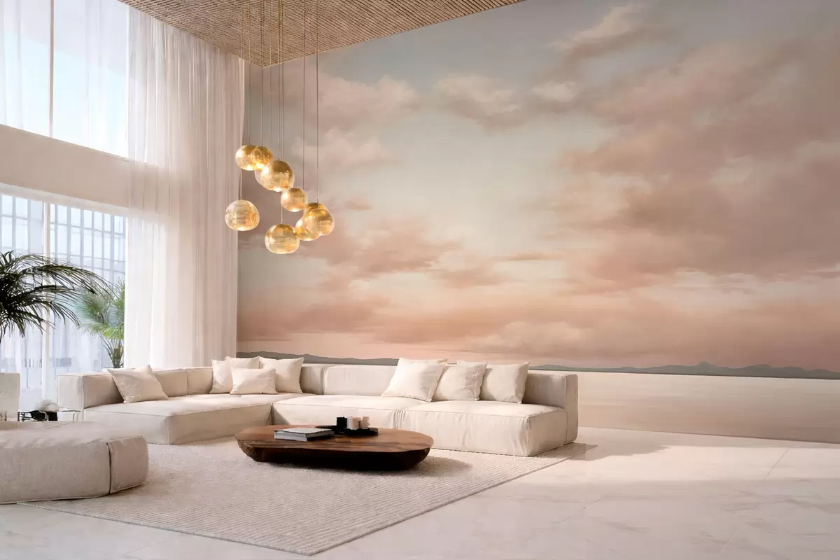 Fotomurales Horizonte marino minimalista con nubes en tonos pastel Nr. w05516