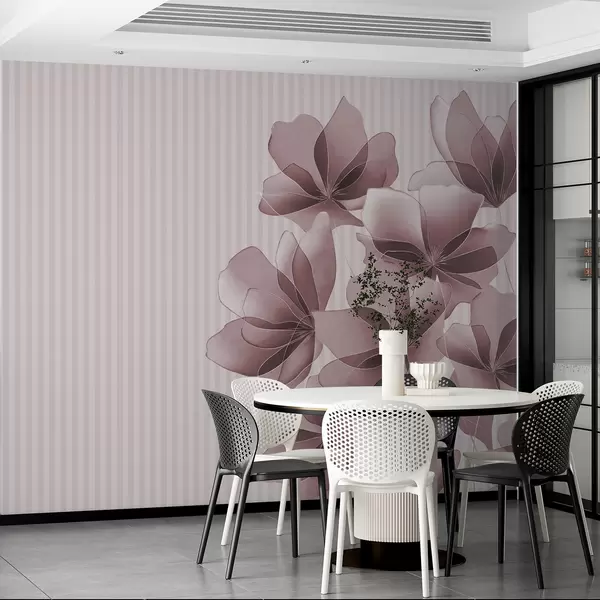 Fotomurales delicadas flores rosadas sobre un fondo rayado Nr. w08040v1