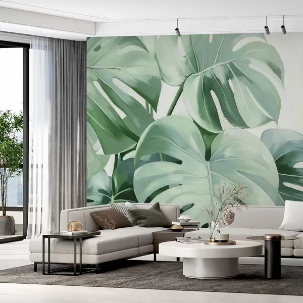 Fotomurales Grandes hojas verdes de monstera tropical. Nr. w08116