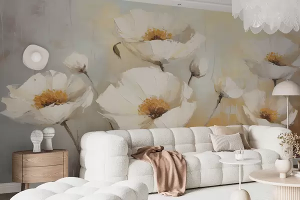 Fotomurales Amapolas blancas vintage Nr. w08123