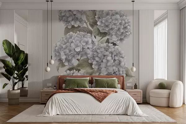 Fotomurales Ramas de hortensias en suaves colores pastel Nr. w08176